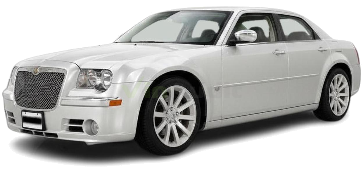 - 300C: 5.7L HEMI V8 engine, leather seats with suede inserts, premium audio system, chrome exterior trim, heated front seats, automatic headlights.